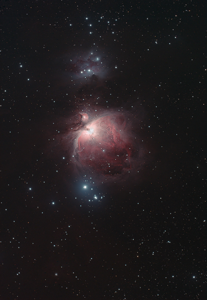 von oben nach unten: Running Man Nebula kleiner und Großer Orionnebel weiter unten sieht man ganz klein den Schlüssellochnebel |